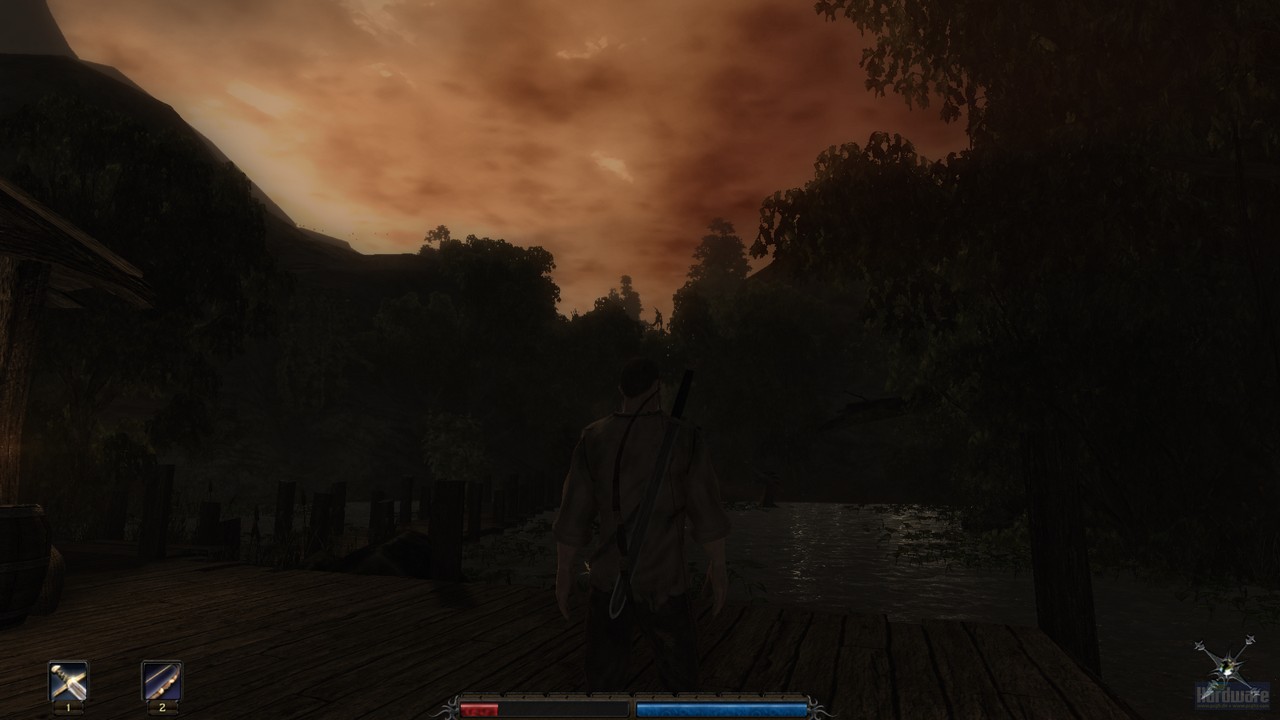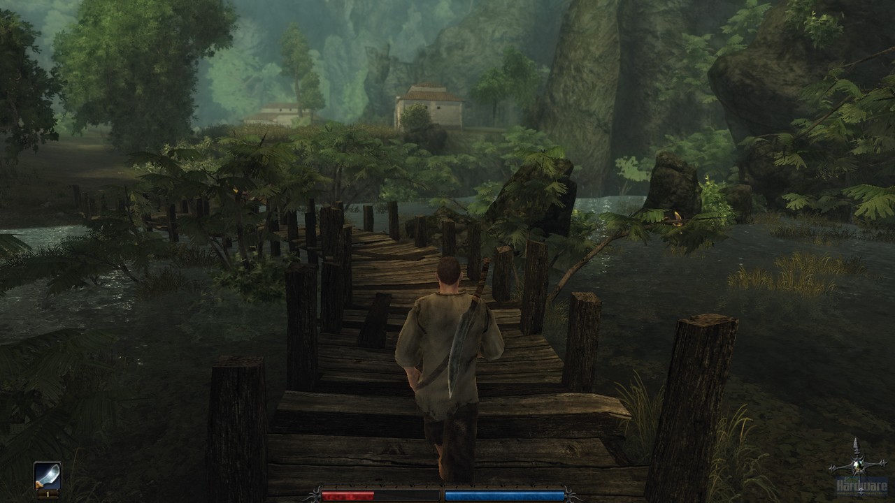 Для нашей тестовой системы Vista-x64, C2E QX6850 (4x 3,9 GHz), 4GiByte DDR2-1066 и видеокартой Geforce GTX 285/1G превью версия Ризен не представила никаких затруднений: на максимальных настройках, 16:1 HQ-AF и разрешением 1.920x1.080 игра бегала при от 25 до 35 Fps. В тумане частота фреймов опускалась до 20 Fps, а в подземельях буквально подпрыгивала до 50 Fps. Снижение разрешения в принципе ничего не изменило, но если сменить 2,0 на 3,0 GHz, Fps сокращается очень заметно – Ризен сразу начинает, как и Готика, ограничиваться процессором.