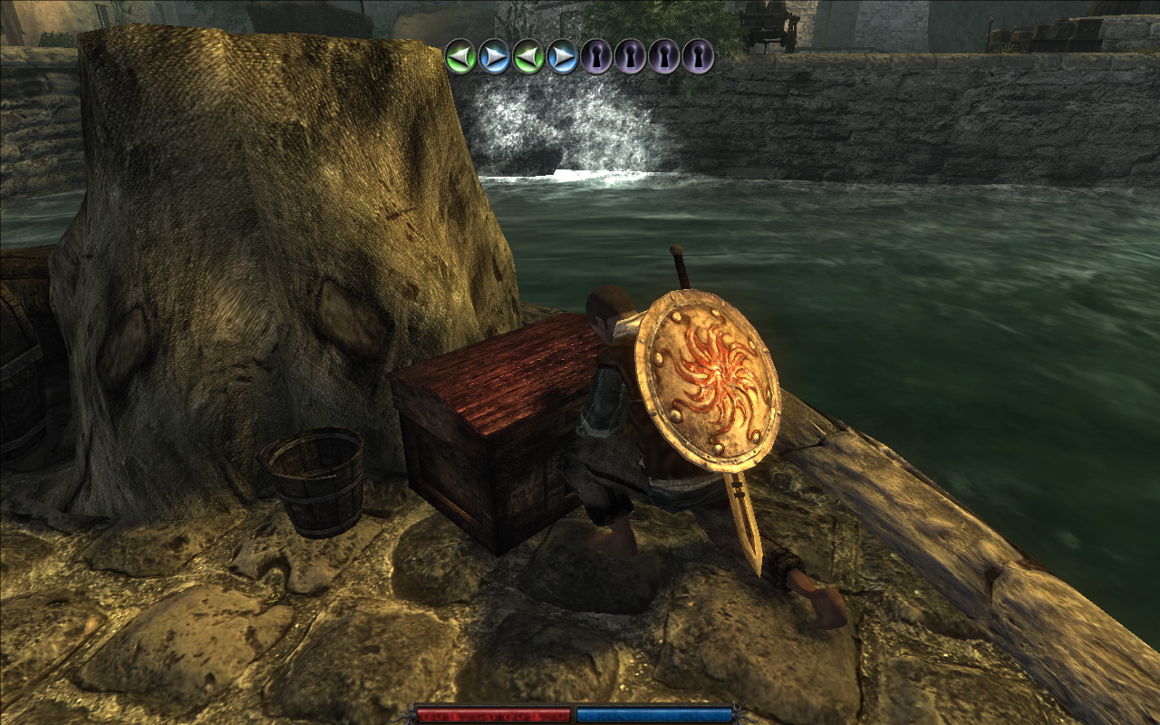 Дикая местность больше напоминает Готику 3 – мы видим холмы, множество подъемов и развилок. На каждом углу натыканы сундуки, закрытые на одинаковую комбинацию (>><< или <<>>). Довольно забавно было выяснить, что у всех послушников монастыря точно такой же «код» сундуков как у древних людей ящеров.
