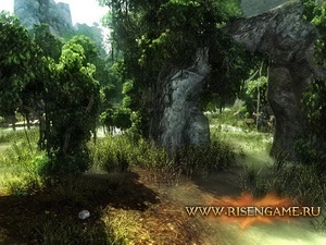 Ну и, конечно же, по всем традициям первых двух частей Готики, события Risen будут разворачиваться на изолированном кусочке суши, представляющем, в данном случае, вулканический остров. Никаких ограничений в исследовании мира не будет. Он будет таким же открытым, каким мы его полюбили в Готике. Хотя, существенное отличие имеется. Бесшовность мира будет осуществлена иначе, нежели в серии Готика. Не будет теперь постоянно подгружаемых областей огромных размеров, которые затормаживают картинку. Подзагрузка будет осуществляться другим способом. Также как и подзагрузка деталей и наполняющих мир обитателей. Всё будет работать по совершенно новой, отлаженной и более совершенной схеме, которая должна порадовать игроков.