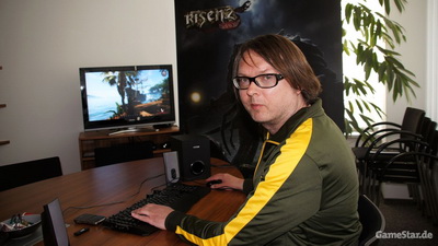 Этот скриншот мы обнаружили на фотографии редактора журнала GameStar, Михаэля Трира, на которой он запечатлен за процессом 5-часового теста пре-альфа версии Risen 2.