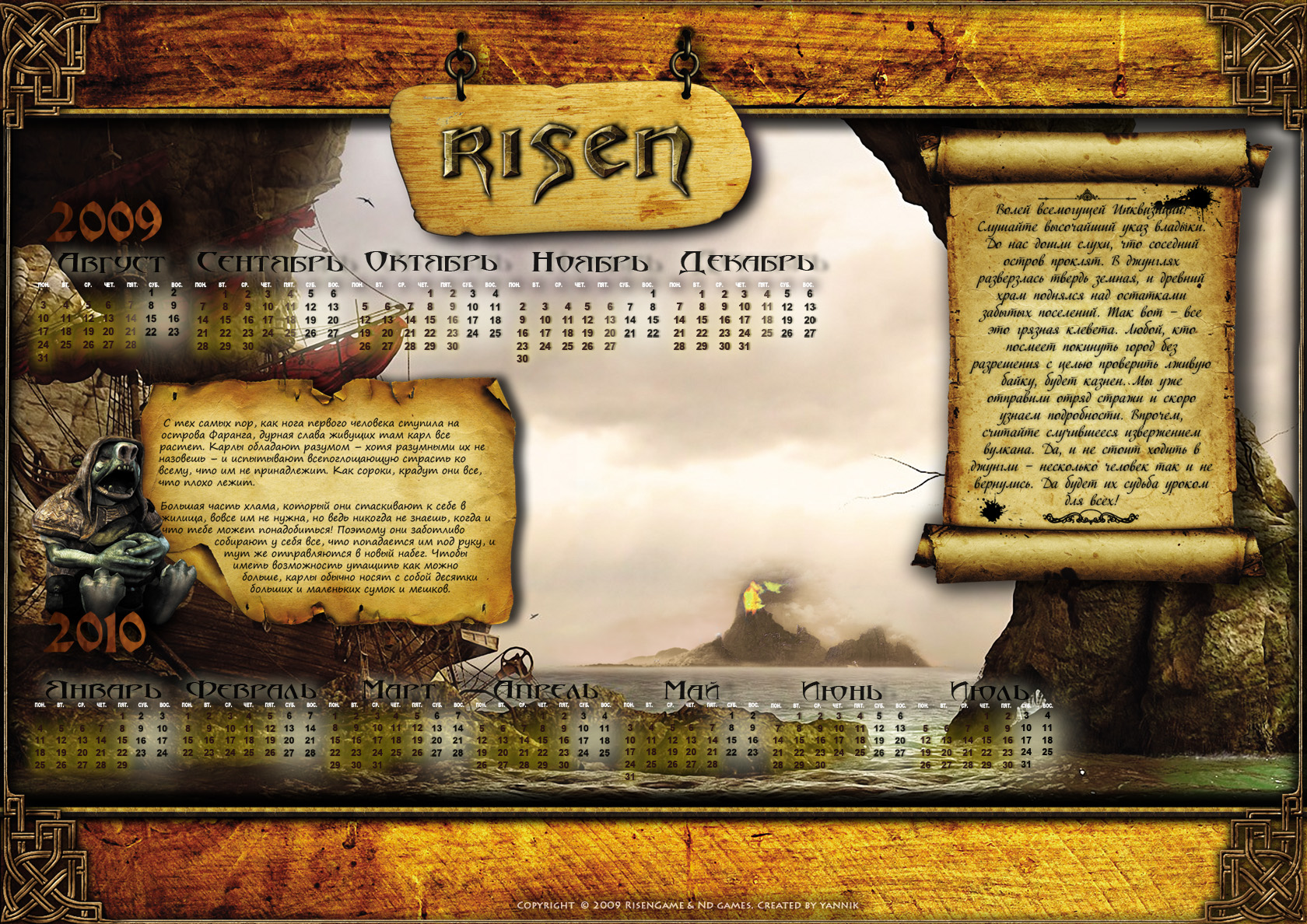 Доступна также версия чуть большего разрешеня: "Календарь Risen 2009-2010" (1920*1200; 1,30 мб)